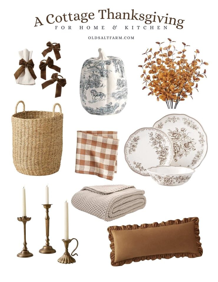 A collection of cozy Thanksgiving decor farmhouse favorites for your home and kitchen. Simple touches that add cottage farmhouse style for the holidays.