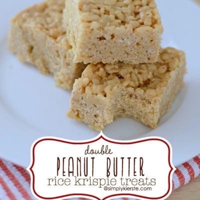 Rice Krispie treats are pretty much beloved at our house. They are requested quite often, and I like to do something a little different from time to time. One of our favorites is Double Peanut Butter Rice Krispie Treats, and it just takes once to fall in love with them! The creaminess of the peanut butter combined with the chewiness of the Rice Krispie treat is a match made in heaven!