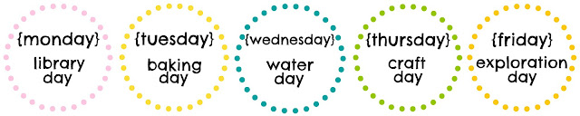 It’s such an easy and fun plan! I assign each day with a specific theme or activity–Library Day, Baking Day, Water Day, Craft Day, and Exploration Day. It allows for everything we want to do, and the kids already know what to expect each day.