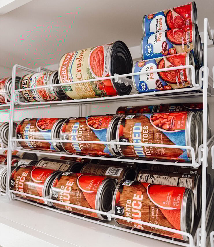 A canned goods organizer saves so much room, and helps me keep everything organized by type of canned good. I really like how they are angled, so the cans easily roll forward. The separators also slide, so they can accommodate larger or smaller cans, depending on what you have.