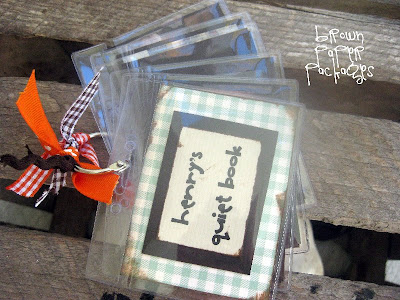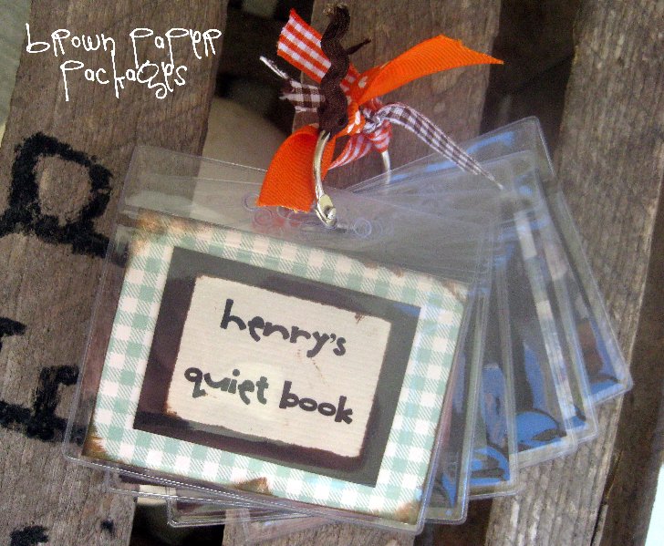 This week I made darling little quiet books for my one year olds, and really love how they turned out. The size is perfect for their little hands, and the plastic protects the pages from chewing and spills. They are easily tucked in to a diaper bag or purse, taking up hardly any room at all.