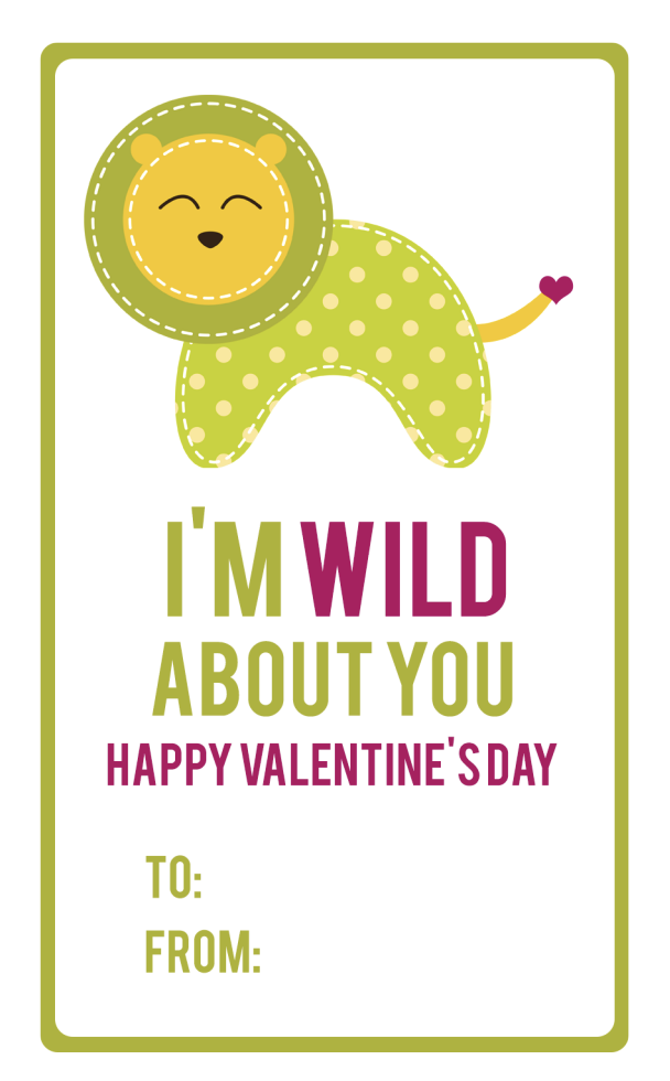 We’re on the countdown to Valentine’s Day at our house–it’s one of our favorite holidays of the year. SO many fun activities! Whether it’s pink hot chocolate, reading Valentine’s Day books, or making sugar cookie bars, we love to celebrate. High up on the list is deciding on what valentines everyone is going to give. This year I created a darling Wild About You Valentine set for my kids to give out.